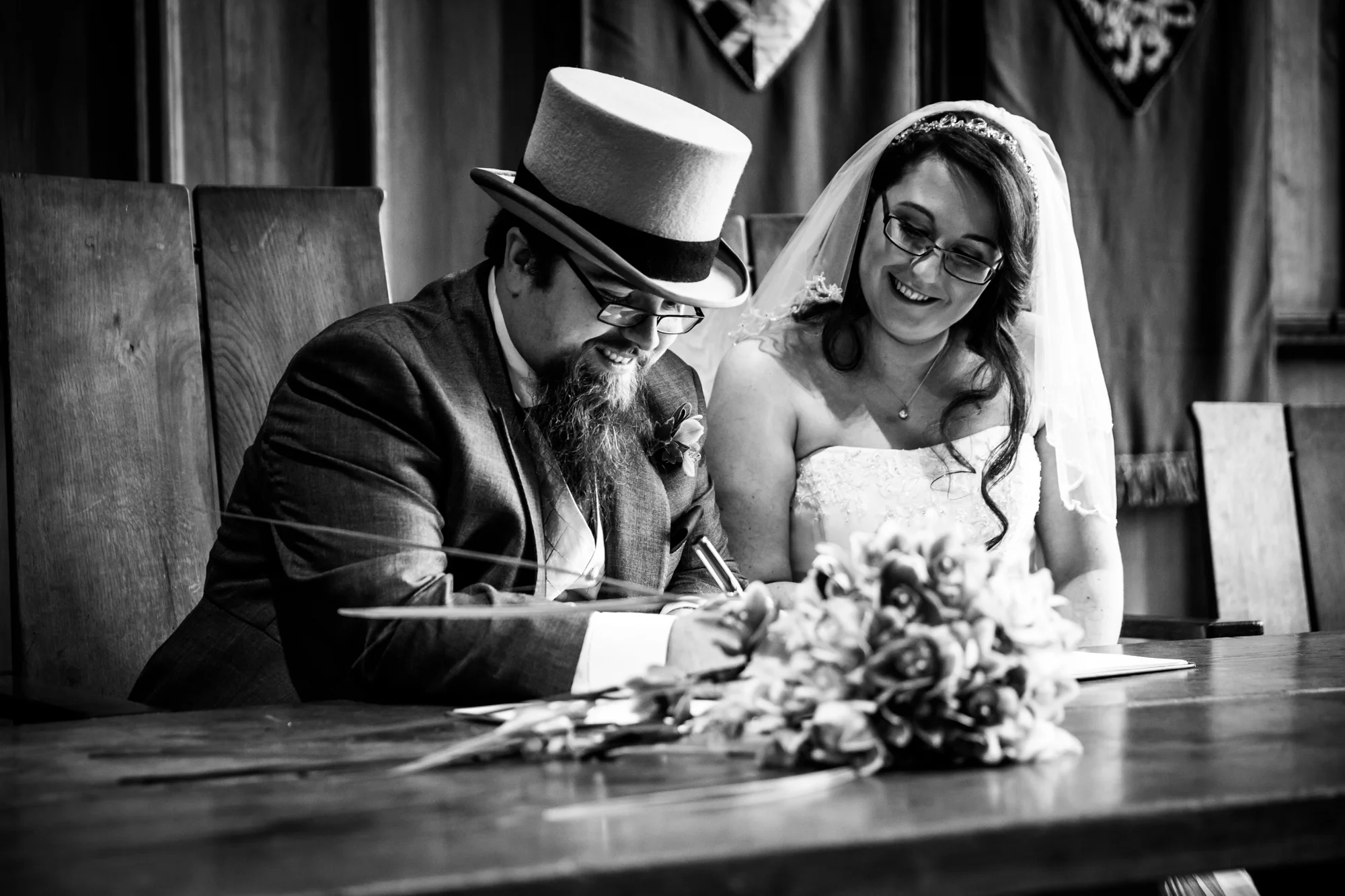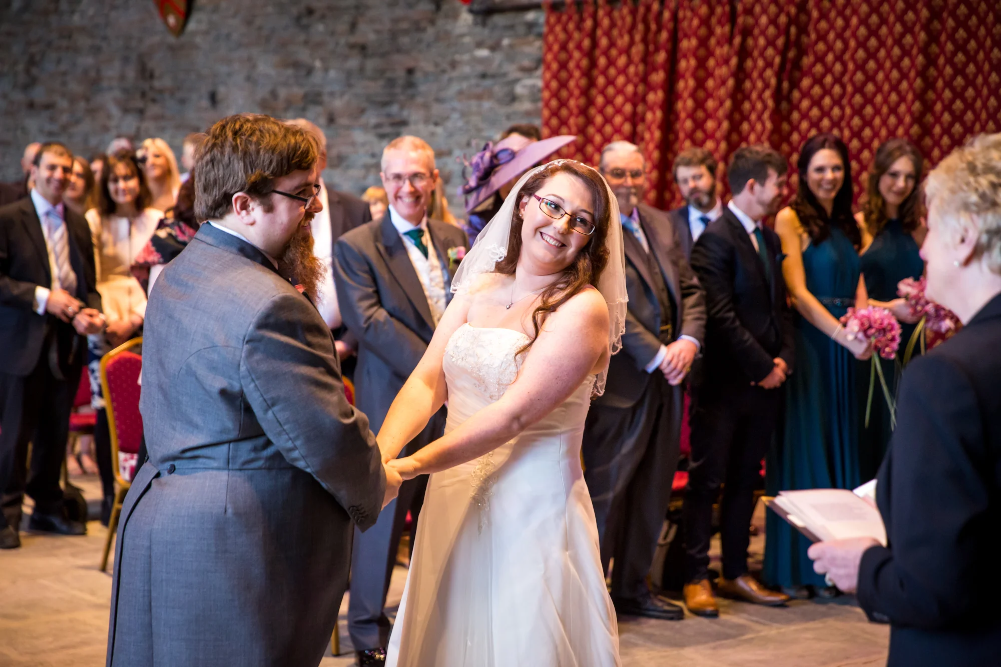 Meeting Mike at the castle, he told me that he was a little nervous. But what really showed, was his eagerness to see his bride. His wait was not very long at all, because as the final guests were quickly ushered into the ceremony hall, Jess turned up in the beautifully decorated wedding car. I can distinctly remember the look that beamed back at me as I peered in through the back window. A truly heart warming moment.